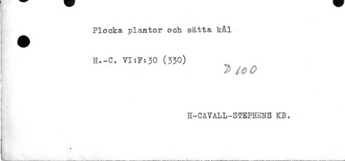 //// Plocka plantor och sätta kål H.-C. VI:P:30 (350) //// 7> /<? 0 //// ¦» //// H-CAVALL-STEPHKNS KB. //// ? ////
