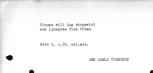 //// Plocka vill jag skogsviol och ljungens fina frans //// BKroi) ful * //// vJ //// Haft 1, s.30, mel»not• //// DEN GAMLA VISBOKEN //// ém M ////
