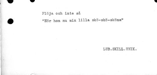 //// Plöja och inte så ^^^ "Hör hon nu min lilla sko-skö-sköna" //// LUB.SKILL.UNIK. //// « //// k ////