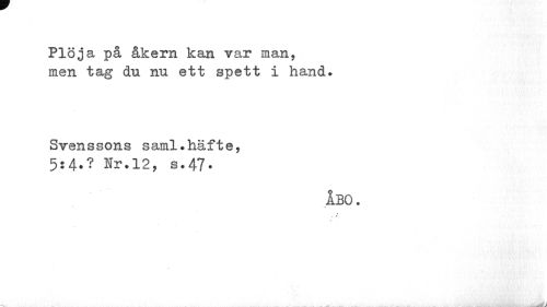 //// Plöja på åkern kan rar man, men tag du nu ett spett i hand. //// Svenssons saml.häfte, //// 5:4.? Nr.12, s.47. //// åbo. //// V % ////