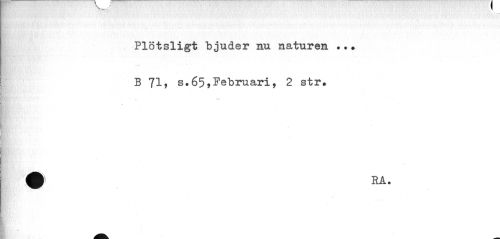 //// I //// I Plötsligt bjuder nu naturen //// B 71, s.65,Februari, 2 str. //// A É Ti //// RÅ • //// ¦ //// ¦ //// ¦ ////
