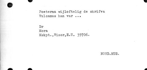 //// m B //// ¦ H //// Poeterna wijloftelig de skrifva Vulcanus han var ..» //// Dr //// Mora //// Mskpt.,Visor,E.U. 39706. //// % //// NORD.MUS. ////