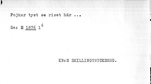 //// r //// Pojkar tyst se riset här ... //// ¦ //// Se: E 1876 l4 //// KB:S SKILLINGTRYCKSREG. //// i //// 1 I i //// i ////