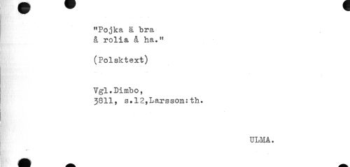 //// "Pojka ä bra å rolia å ha.H //// (Polsktext) Vgl.Dimbo, //// 3811, s#12,Larsson:th. //// ULMA. ////