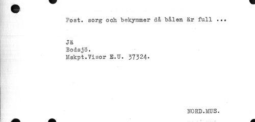 //// Post. sorg och bekymmer då bålen är full .•• Jä //// Bodsjö. //// Mskpt.Visor E.U. 37324» //// i //// NORD.MUS. ////