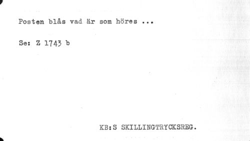 //// Posten blås vad är som höres ... Se: Z 1743 h //// i //// kb:s skiLLIHGTRYckSREG. //// t - • ¦ » • i //// w ////
