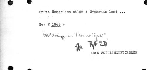 //// Prins Habor den "bålde i Svearnas land .. • //// ™ //// Se: E 1869 e //// (Kr H ikK stofayrilM //// KB:S SKILLINGTRYCKSREG. ////
