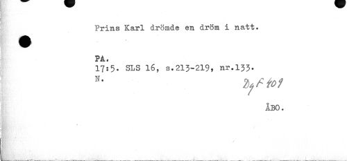 //// Prins Karl drömde en dröm i natt. //// i //// pa. //// 17:5. SLS 16, s.213-219, nr.133. //// Hp //// ÅBO. ////