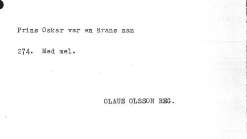 //// t r //// i //// ! //// 1 • ¦ V . r //// I //// Prins Oskar var en ärans man //// » //// 274* Med mel. //// i I //// • j //// i i //// OLAUS OLSSON REG. //// r • v -t 1 :•¦!_ ////