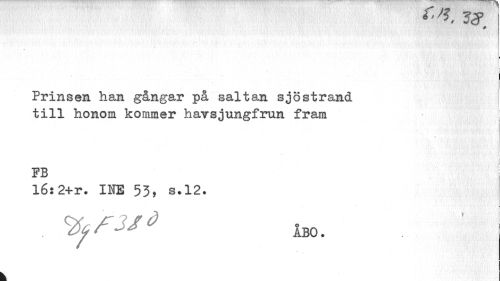 //// "ig 0 //// \ I //// Prinsen han gångar på saltan sjöstrand till honom kommer havsjungfrun fram //// \ //// i : //// PB //// 16:2+r. INE 53, s.12. //// . fym* åbo. //// k ////