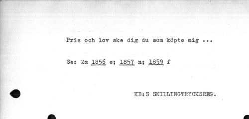 //// K?:./ -. ¦ ¦ • ' //// > //// Pris och lov ske dig du som köpte mig ... Se: Zz 1856 e; 1857 a; 1859 f //// « //// KB: S SKILLINGTRYCKSREG. ////