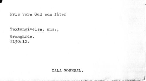 //// a //// Pris vare Gud som låter //// r //// Textangivelse, mus», //// Grangärde. 2130:12. //// . •• • , ¦ v.' ! //// i //// DALA FORNSAL. //// _ - t v* __>-_• ////