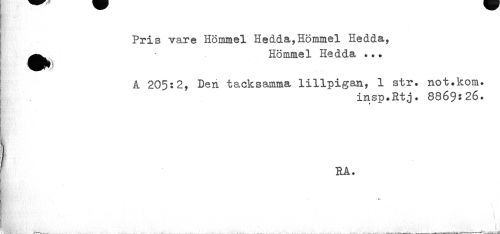 //// Pris vare Hömmel Hedda, Hömmel Hedda, ^^ Hömmel Hedda //// A 205:2, Den tacksamma lillpigan, 1 str» not.kom. //// insp.Rtj. 88695 26. //// » //// RA. //// • St //// * i¦ //// •'v*; , ^ \ //// _ ___ ___ _ ^^___r _ —i- *___ <ir-_r .1 ¦ «*_• ////