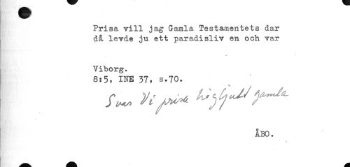 //// Prisa vill jag Gamla Testamentets dar då levde ju ett paradisliv en och var //// » //// Viborg. //// 8:5, INB 37, s.70. //// fw Vt'JM^ //// » //// ÅBO. //// 1 ////