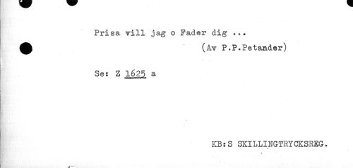//// Prisa vill jag o Fader dig ... //// (Av P.P.Petänder) //// Se: Z 1625 a //// \ //// KB:S SKILLINGTRYCKSREG. //// s ////