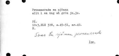 //// Promenerade en sjöman allt i en äng så grön jo,jo. //// ! //// PÄ. //// 10:3,SLS 328, s.49-51, nr.42. N. //// ÅBO. ////