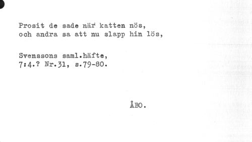 //// Prosit de sade näi* katten nös, och andra sa att nu slapp hin lös, //// Svens sons saml?häft e, //// 7:4.? Nr.31, s.79-80, //// ÅBO. ////