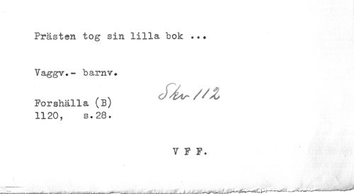 //// Prästen tog sin lilla bok ?.? //// Yaggv#~ barnv# //// Porshälla (b) 1120, s.28. //// V F F. //// ___^___i___-i__y___ÉM___---___k^Ad&^^U___---———--- ////