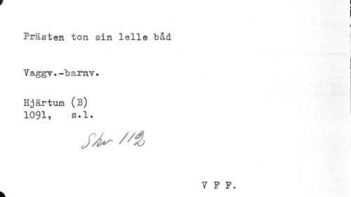 //// I //// i //// I //// Prästen ton sin lelle båd j //// i //// : ( I //// v //// Vaggv. -b arnv ? j //// Hjärtum (B) //// 1091, s.l. //// V F F. ////