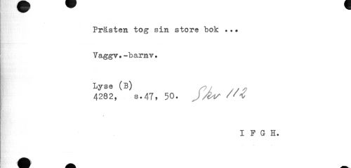 //// Prästen tog sin store "bok ... Yaggv.-barnv. //// Lyse (B) //// 4282, s.47, 50. J&if //// » //// I P G H. ////