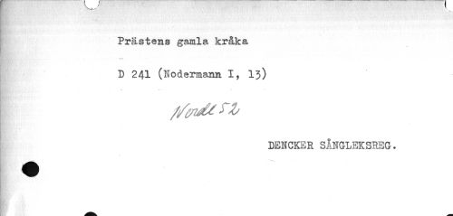 //// •y //// fl, ' . . //// Prästens gamla kråka D 241 (Nodermann I, 13) //// //CM&fb //// DENCKER SllGLEKSREG. ////