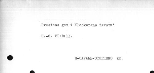//// Prestens get i Klockarens farstu' //// H.-C. VI:D:13. //// é //// I H-CAVA1L-STEPHENS KB. //// / ////