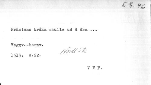 //// I //// I //// I //// Prästens kråka skulle ud å åka //// i //// ? i //// Vaggv.-barnv. i //// 1313, B.22. //// V F F. //// 1 //// 1 //// # ////