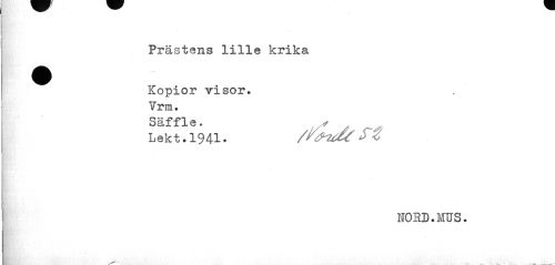 //// Prästens lille krika //// Kopior visor. Vrra. Säffle. //// Lekt. 1941. /y&VU t //// HORD.MUS. ////