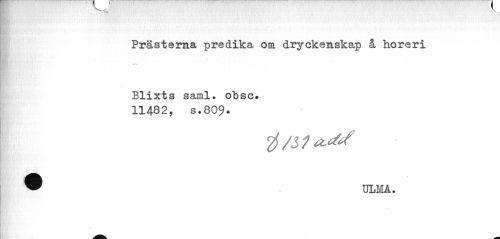 //// . -0 _ v - — //// . //// ¦ //// Prästerna predika om dryckenskap å horeri //// wmim r //// Blixts saml. obsc. 11482, s.809. //// ® ULM A. ////