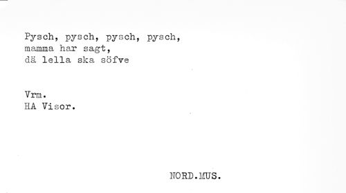 //// Pysch, pysch, pysch, pysch, mamma har sagt, dä lella ska söfve //// Vrrn. //// HA Visor. //// NORD.MUS. ////