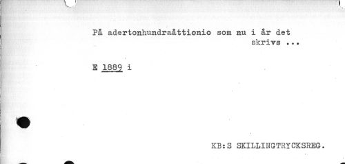 //// På adertonhundraåttionio som nu i år det //// skrivs ..• //// « //// E 1882 i //// || c i '^flBpt //// s //// KB:S SKILLINGTSYCKSREG. ////