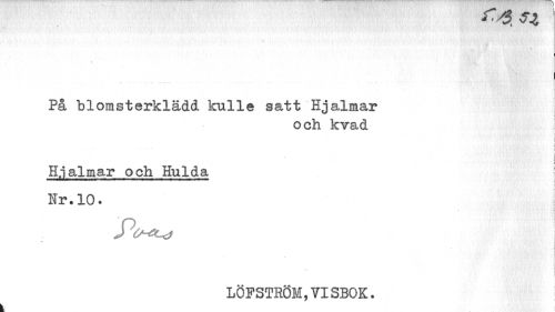 //// På blomsterklädd kulle satt Hjalmar //// o ch kvad i //// i i //// ... . ¦ . .¦ : } //// c i //// i //// Hjalmar och Hulda //// : I //// Nr.10. I //// v i //// i i //// LÖFSTRÖM,VISBOK. ////