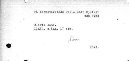 //// På blomsterklädd kulle satt Hjalmar //// och kvad //// / //// % //// Blixts saml. //// 11482, s.844, 17 str. //// ® ULMA, //// » ////