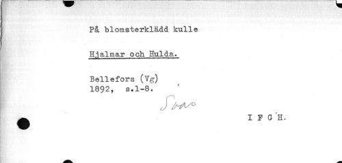 //// - //// På blomsterklädd kulle Hjalmar och Hulda* Bellefors (Vg) //// 1892, s. 1-8. //// ä I F G H. ////