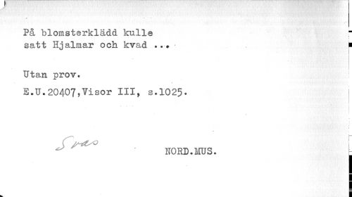 //// • - //// På blomsterklädd kulle r //// satt Hjalmar och kvad . .# p //// Utan prov. //// i « //// E.U.20407,Visor III, s.1025. //// ! i //// % //// HORD. MUS. j //// i ////