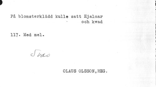 //// I //// I //// På blomsterklädd kulle satt Hjalmar //// och kvad I //// L i //// 117. Med mel. i //// i //// 1 //// 1 //// > //// r //// c/ //// OLAUS OLSSON,RES. ////