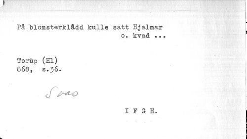 //// ¦ //// På blomsterklådd kulle satt Hjalmar //// o. kvad .«* //// Torup (Hl) //// 868, b.36. | //// ¦ //// 1 //// % //// cr^o //// I F G H. | //// ¦ //// E //// m //// i ////