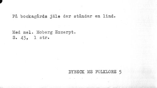 //// På "bockagårds jäle der ståndar en lind. Med mel. Moberg Excerpt. //// S. 43, 1 str. //// DYBECK MS FOLKLORE 5 ////
