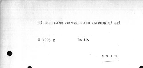 //// ¦ //// ¦ ¦ //// på bohusläns kuster bland klippor så grå //// < //// * ** //// — ^ < ... e 1905 g Ra 12. //// ® s v a s. ////