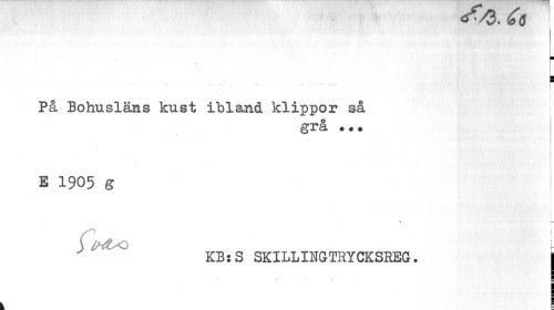 //// ¦ //// ! //// ! //// På Bohusläns kust ibland klippor så //// grå .«. //// E 1905 g //// 1 //// » ;_ //// L //// KB:S SKILLINGTRYCKSREG. | //// 1 //// I ¦ //// ¦ ////
