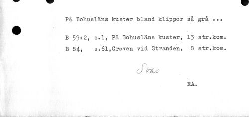 //// På Bohusläns kuster bland klippor så grå .. • //// ^^ B 59:2, s.l, På Bohusläns kuster, 15 str.kom. //// B 84, s.61,Graven vid Stranden, 8 str.kom. //// cP^U) //// RA. //// '»'ii.' '' .4 ill ., ////