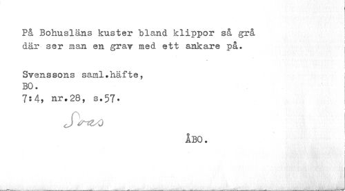 //// På Bohusläns kuster bland klippor så grå //// » //// där ser man en grav med ett ankare på. //// c //// Svenssons saml.häfte, i //// BO. //// 7:4, nr.28, a.57» //// ÅBO. //// I ////