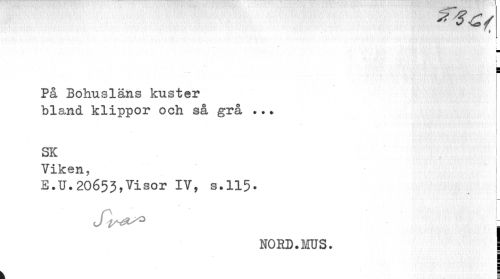 //// i //// i i i //// a //// På Bohusläns kuster //// bland klippor och så grå ..? //// ¦ //// SK //// 9 . //// Viken, //// E.U.20653,Visor IV, s.115- //// i- //// NORD.MUS. ! //// I ? ////