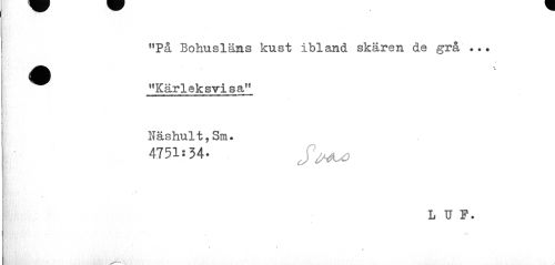 //// "På Bohusläns kust ibland skären de grå ... "Kärleksvisa" //// Näshult,Sm. //// 4751«34. //// L TJ F. //// *V.J ¦ - ¦¦¦¦'» • *** //// • « //// * //// ra \i > . ^^ •, ////
