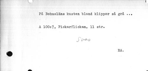 //// BBÉB8B ¦ //// På Bohusläns kusten bland klippor så grå ..• //// ¦ //// A 100:7, Fiskarflickan, 11 str* //// j //// ^ RA. ////