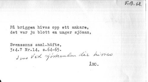 //// I //// På briggen hivas opp ett ankare, det var ju blott en unger sjöman, //// Svenssons saml.häfte, //// 3:4.? Nr.14, s.64-65. //// ÅBO. //// * > //// !v ' ' - f //// I ////