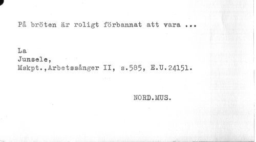 //// På bröten är roligt förbannat att vara ... //// i //// La //// Junsele, //// Mskpt.,Arbetssånger II, s.585> E.U.24151* //// i //// NORD.MUS. //// i //// i I ////