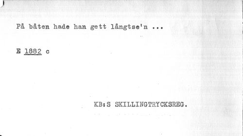 //// På båten hade han gett långtse !n //// l //// S 1882 c //// i //// KB:S SKILLINGTRYCKSREG. //// * "1 l - • •» ! . ////