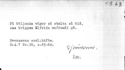//// ¦ ¦ ¦ //// .. • v //// På böljande vågor så stolta så blå, ses briggen Elfrida nuframåt gå. //// Svenssons saml.häfte, //// 6:4*? Hr.28, s.83-84. ^ ^ //// ^^ ••'.' 'il • abo. //// k i ////