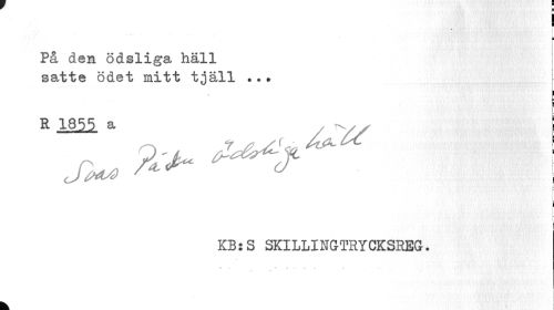//// I //// p //// På den ödsliga häll satte ödet mitt tjäll . //// R IS55. a //// ^ ^ | //// i //// - //// = //// KB:S SKILLINGTRYCKSREG. //// •t •• H f 1 //// k ////